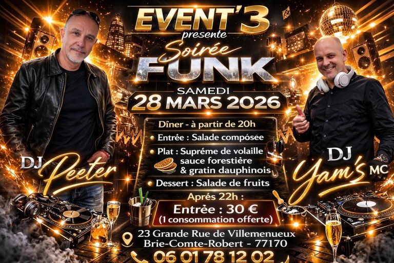 Venez à nos soirées Funk dans notre salle Event’3 ..